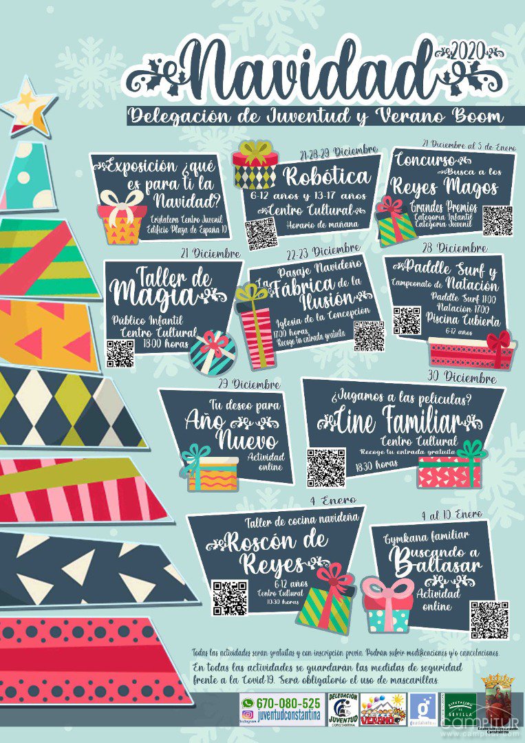 La Delegación de Juventud y el Programa Verano Boom PDI de Constantina, en colaboración con el Centro Guadalinfo, proponen al público joven una serie de actividades para estas navidades.