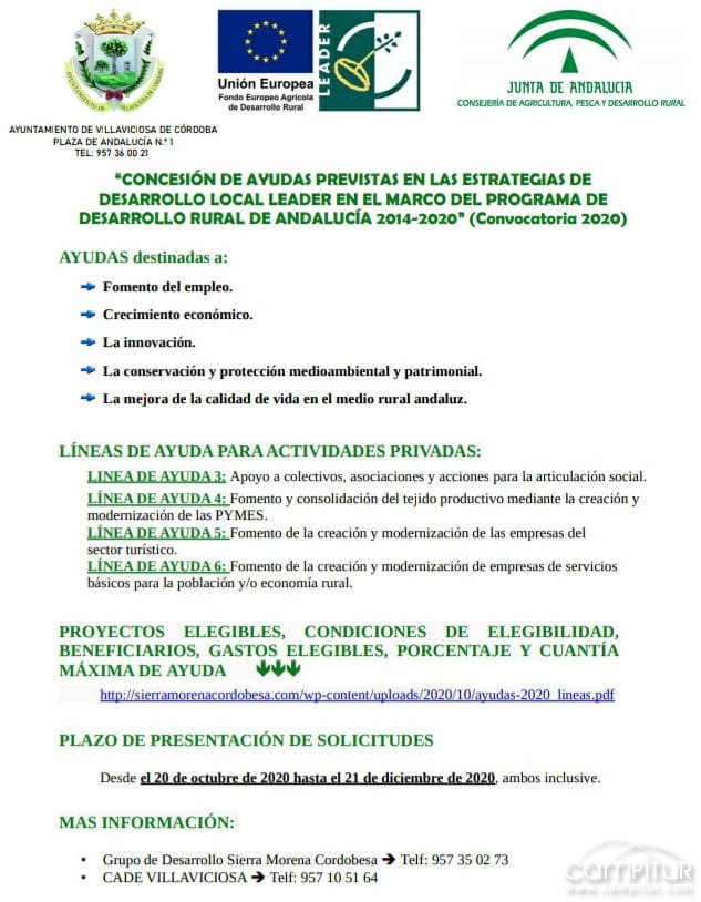 No obstante, para ampliar la información podéis hacerlo llamando al teléfono 957 35 02 73, del Grupo de Desarrollo Sierra Morena Cordobesa.