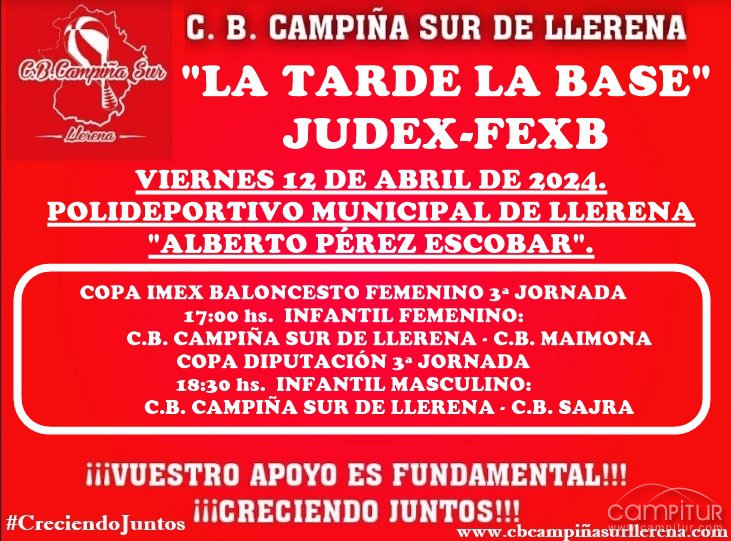 18:30 h.- Infantil Masculino: C.B. Campiña Sur de Llerena – C.B. Sajra