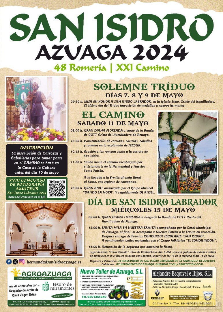 La localidad de Azuaga se prepara para celebrar con gran entusiasmo y devoción su tradicional Romería y Camino en honor a San Isidro Labrador. Este año 2024, se llevará a cabo la 48ª Romería y la 21ª edición del Camino, eventos que prometen ser tan espectaculares como en años anteriores.