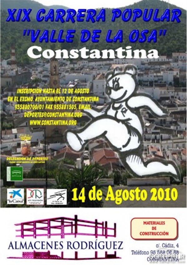 La localidad sevillana de Constantina celebra el próximo 14 de agosto la XIX Carrera Popular “Valle de la Osa”. La salida se efectuará desde la Calle Mesones a las 19:30 horas, estando ubicada la meta en el mismo lugar.