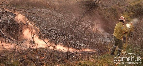 A pesar de que los técnicos del Plan Infoex conseguían controla el fuego en su totalidad, un camión autobomba y un retén, continuaron refrescando la zona para evitar que el fuego pudiera nuevamente reavivarse.