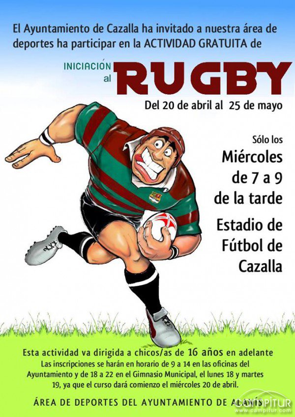 Desde el Ayuntamiento de Alanís informan a los jóvenes de la localidad de que han sido invitados por el consistorio de Cazalla de la Sierra a participar en un Curso de Iniciación al Rugby, organizado por éste último.