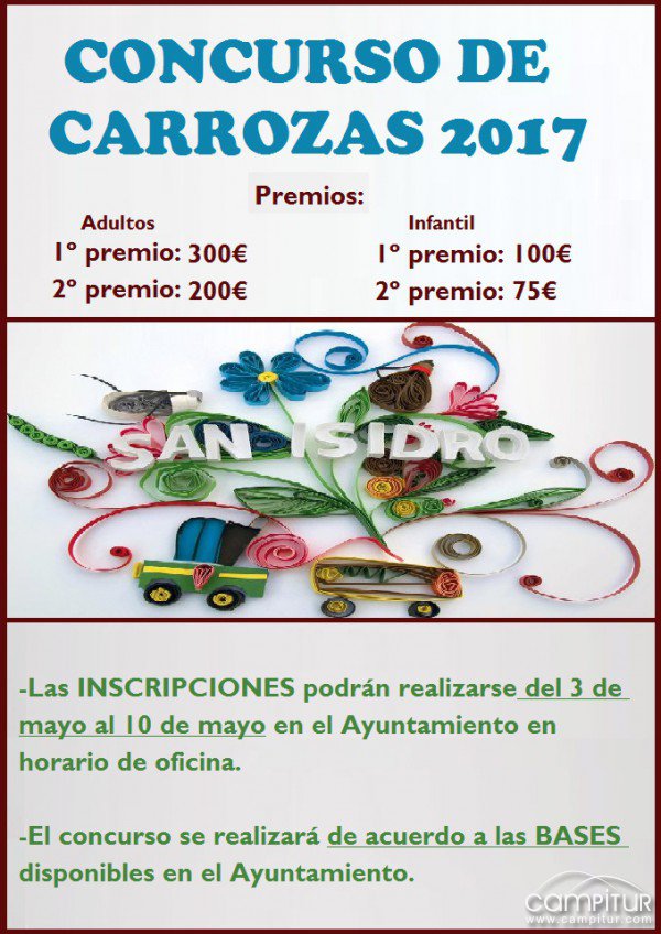 El sábado, 13 de mayo, Campillo de Llerena celebra sus fiestas en honor a San Isidro Labrador, y para ello, desde el Ayuntamiento se pone en marcha un año más su popular concurso de carrozas.
