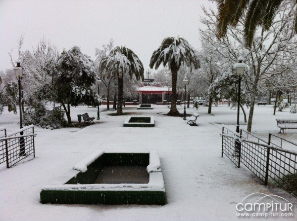 Tal y como anunciaron los servicios de alerta del Gobierno de Extremadura que podria suceder, las calles de Azuaga amanecían hoy 28 de febrero cubiertas por una espesa capa de nieve de entre 3 y 4 centímetros.