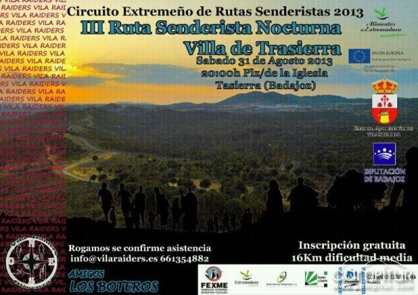 El próximo sábado, 31 de agosto, el municipio pacense de Trasierra vuelve a ser el escenario de una nueva ruta senderista nocturna, en concreto dicho día se celebra la III Ruta Senderista Nocturna Villa de Trasierra.