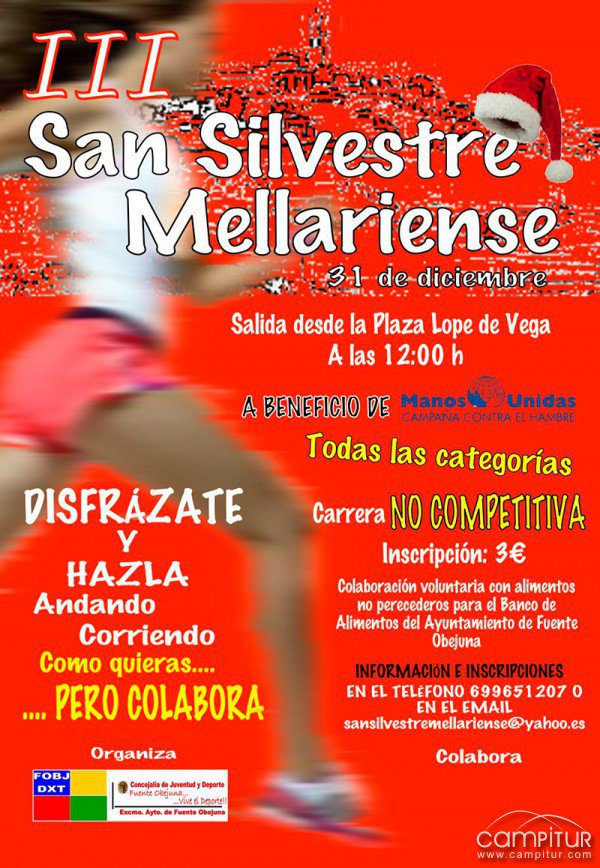 El 31 de diciembre, jueves, Fuente Obejuna acoge un año más una nueva edición de su carrera popular, en concreto se llevará a cabo el III San Silvestre Mellariense.