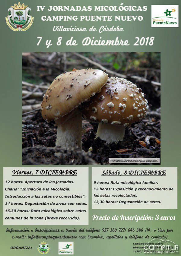 Villaviciosa de Córdoba acogerá, los días 7 y 8 de diciembre, la celebración de las IV Jornadas Micológicas organizadas por el Camping de Puente Nuevo de la localidad, y que cuentan con la colaboración del Ayuntamiento.