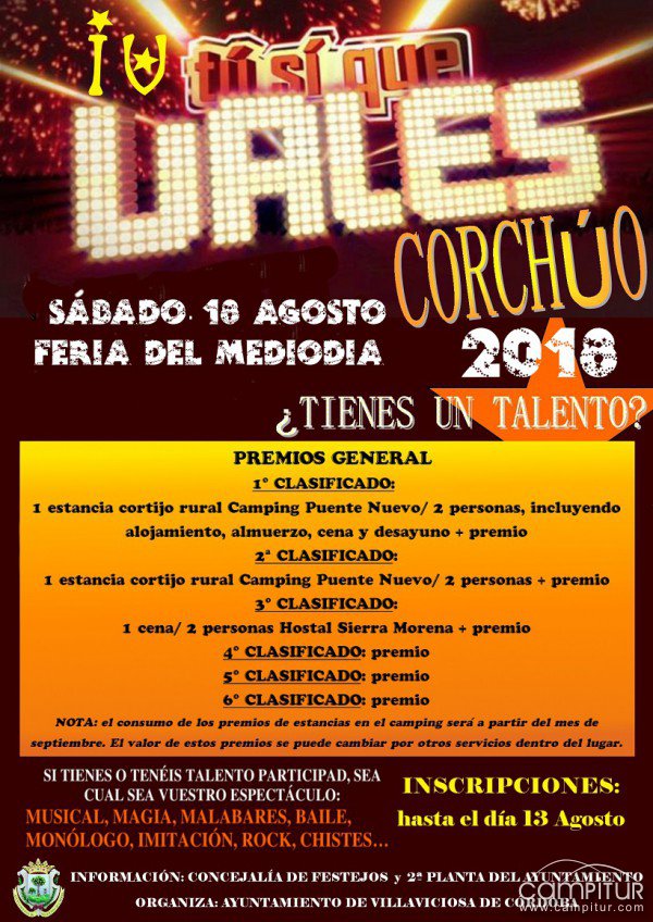 Si es así, si tenéis un talento especial, sea cual sea vuestro espectáculo, musical, magia, malabares, baile, monólogos, imitación, rock, chistes… participar en el IV Tú Sí que Vales Corchúo 2018.