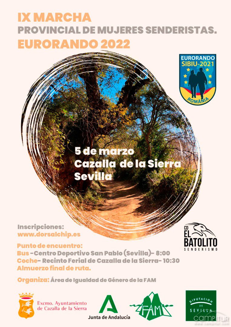El próximo sábado, 5 de marzo, Cazalla de la Sierra acoge la celebración de la IX Marcha Provincial de Mujeres Senderistas. Eurorando 2022.