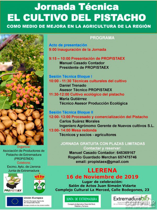 La Asociación de Productores de Pistacho de Extremadura tiene previsto llevar a cabo una Jornada Técnica sobre el cultivo de pistacho como medio de mejora de la agricultura en esta región.