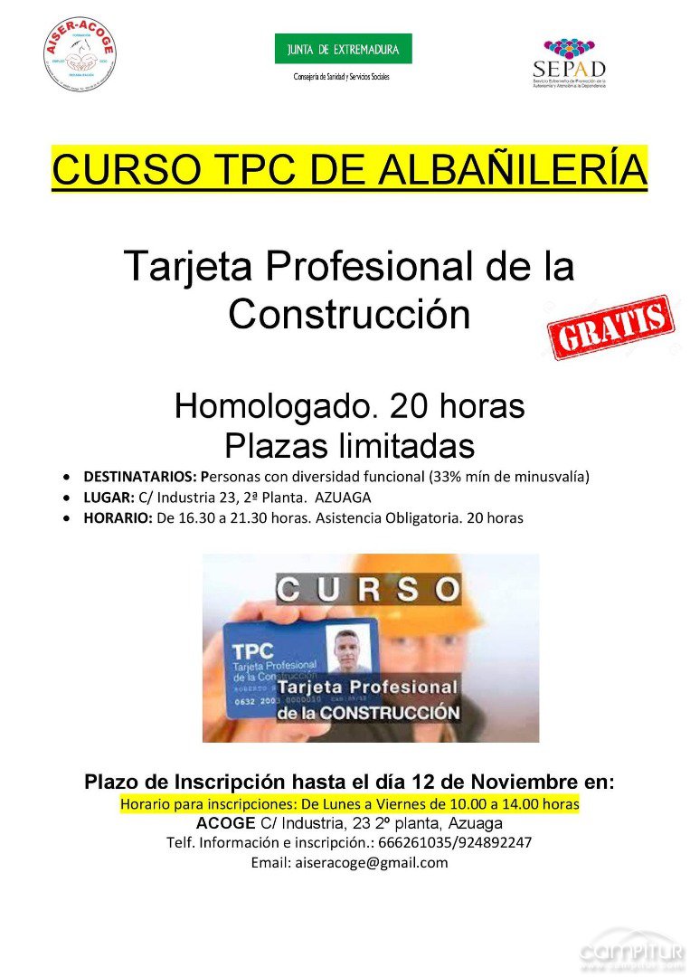 La próxima actividad dentro de este programa es un Curso de la Tarjeta Profesional de la Construcción (TPC), homologado y gratuito, de una duración total de 20 horas. Este curso, orientado a personas con discapacidad (mínimo 33% de discapacidad), se impartirá de manera presencial durante 4 días, en horario de 16:30 a 21:30. La formación se llevará a cabo en la sede de AISER-ACOGE, ubicada en C/ Industria, 23 (Edificio de la Escuela Profesional), 2ª Planta, junto al Centro de Empleo de Azuaga.