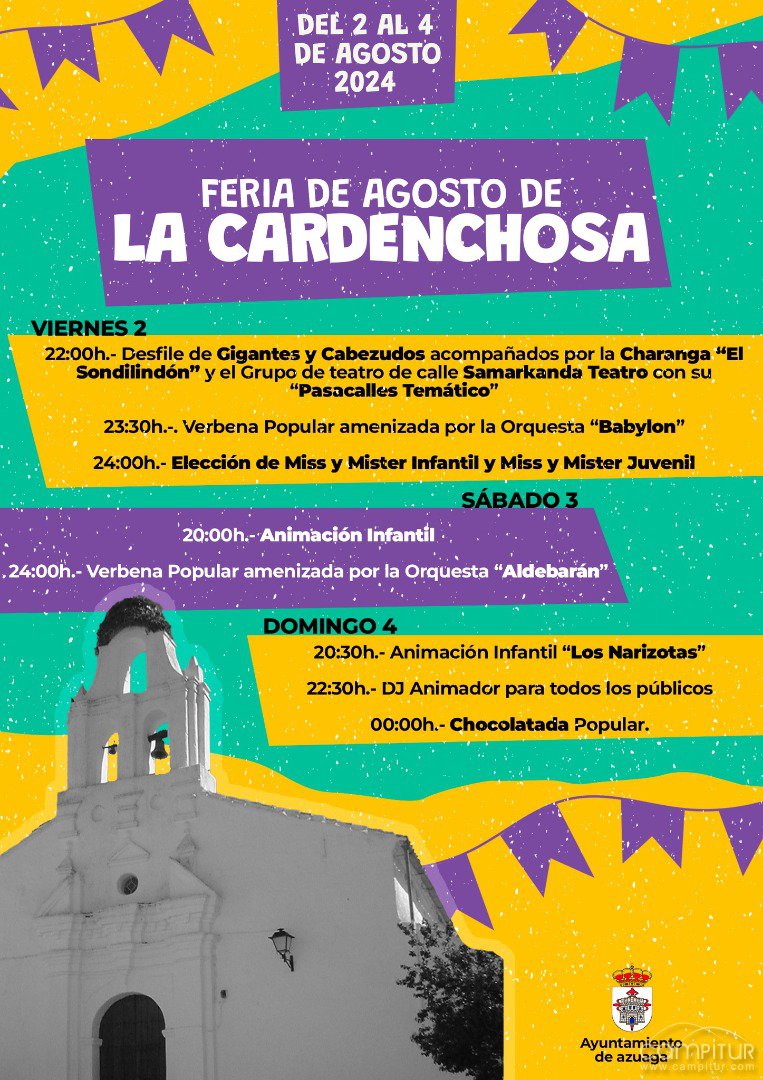 Organizada por el Ayuntamiento de Azuaga, la feria de agosto de La Cardenchosa promete ser una celebración inolvidable que combina tradición, entretenimiento y diversión para toda la familia. ¡No te lo pierdas!