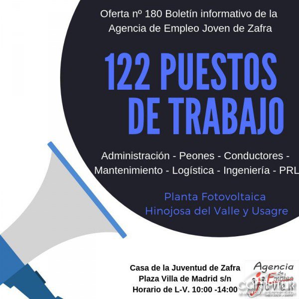 Desde el Ayuntamiento de Zafra, a través de su Agencia de Empleo Joven, informan de que se le ha remitido la solicitud de demanda de trabajadores, se necesitan 122, en la que se especifica que los interesados pueden enviar su currículo hasta principios de diciembre ya que la idea de los promotores, Ecoenergías del Guadiana, es que los trabajos comiencen a principio de enero.