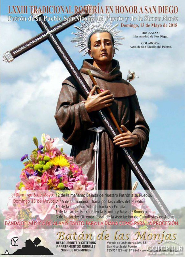 San Nicolás del Puerto celebra, el próximo domingo 13 de mayo, su Romería en honor a San Diego, patrón de la localidad así como de la Sierra Norte.