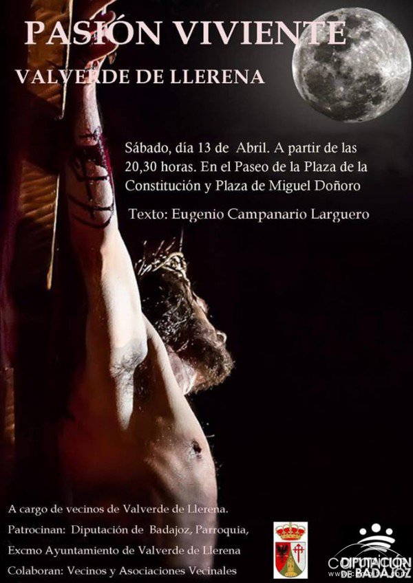 El sábado, 13 de abril, Valverde de Llerena acoge la representación de la Pasión Viviente, en el Paseo de la Plaza de la Constitución y Plaza de Miguel Doñoro, a partir de las 20:30 horas.