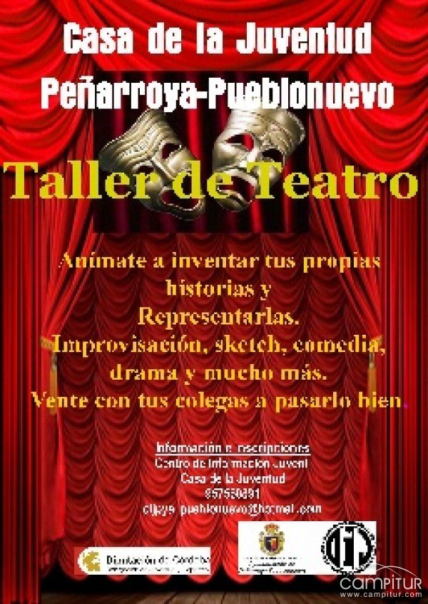 La localidad de Peñarroya-Pueblonuevo acoge para los próximos meses de septiembre y octubre, la impartición de un Taller de Iniciación al Teatro, organizado desde el Área de Juventud del Ayuntamiento.
