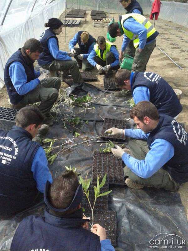 Durante un año, diez jóvenes de ambas localidades (nueve chicos y una chica) participan en la actividad formativa que configura la especialidad de “Auxiliar de viveros y centros de jardinería e instalación y mantenimiento de jardines y zonas verdes” que desarrolla los dos certificados de profesionalidad que se nombran en dicha especialidad.