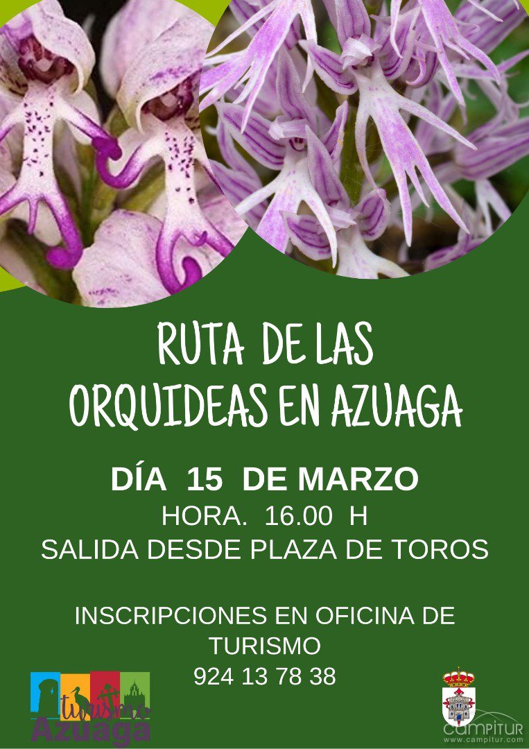 La Oficina de Turismo de Azuaga organiza, una vez más, una nueva ruta de las Orquídeas, en la que se podrán observar los nuevos especímenes que han florecido en el entorno azuagueño tras las pasadas lluvias.