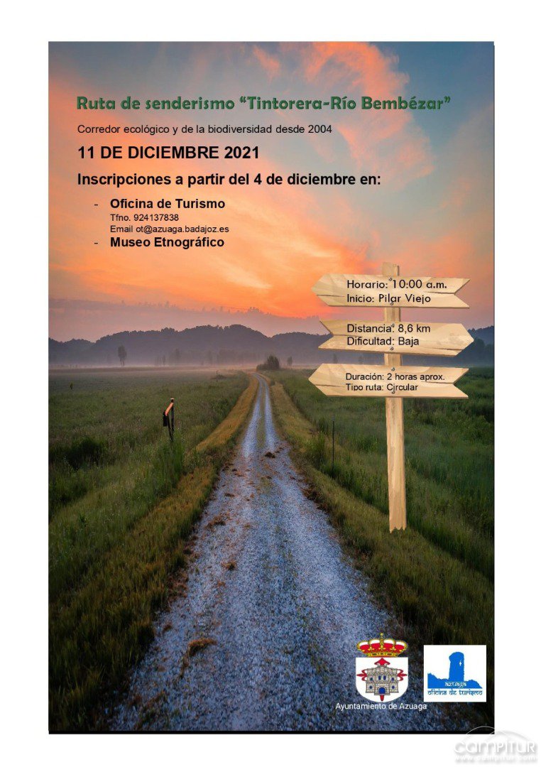 El próximo sábado, 11 de diciembre, Azuaga acoge la celebración de la ruta de senderismo “Tintoreta-Río Bembézar”, organizada por la Oficina de Turismo de la localidad.