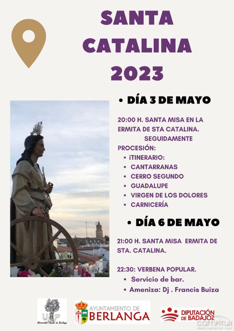20:00 h.- Santa Misa en la Ermita de Santa Catalina. Seguidamente procesión. Itinerario: Cantarranas, Cerro Segundo, Guadalupe, Virgen de los Dolores y Carnicería.