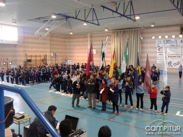 El encuentro se inició a las 10.00 h. con el acto de inauguración en el Pabellón Poliderportivo Municipal “Alberto Pérez”; tras el desfile de todos los participantes en este encuentro, en torno a 500 alumnos, el colegio Santo Ángel de Sevilla, de Huelva, de Puerto Real y de Llerena. Abrió el acto la maestra de ceremonias Diana Santos. Tras ella, tomó la palabra la Presidenta del AMPA del colegio anfitrión, Pilar Méndez, quién dio la bienvenida a todos los participantes y acompañantes y tuvo palabras de agradecimiento para todos los que han hecho posible la celebración de esta convivencia deportiva; seguidamente tomó la palabra el Presidente de Fepasa Emilio Morilla y finalizó este turno de intervenciones el primer Teniente de Alcalde del Ayuntamiento de Llerena, José F. Castaño.