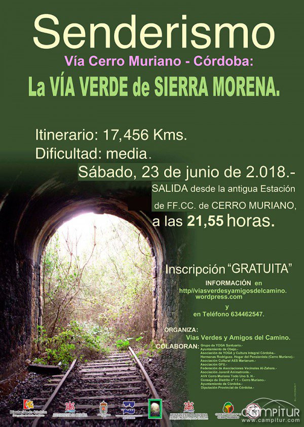 El sábado, 23 de junio, tendrá lugar la celebración de la ruta senderista La Vía Verde Sierra Morena, Vía Cerro Muriano – Córdoba.