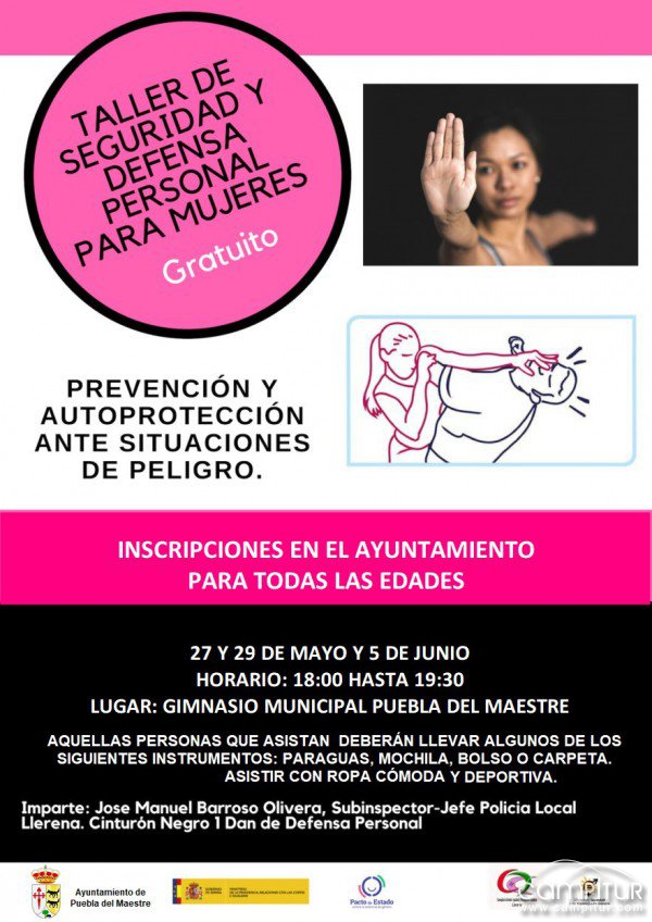 La localidad pacense de Puebla del Maestre acogerá, los días 27 y 29 de mayo, y 5 de junio, la impartición de un Taller de Seguridad y Defensa Personal para Mujeres.
