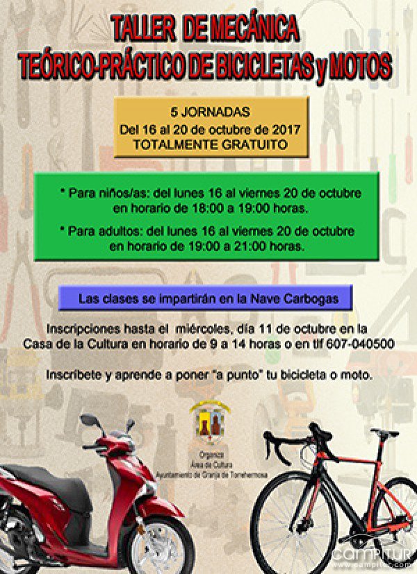 La localidad pacense de Granja de Torrehemorsa acogerá la semana del 16 al 20 de octubre un Taller de Mecánica Teórico Práctico de Bicicletas y Motos.