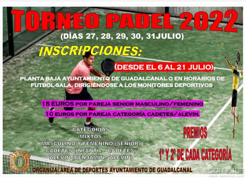El Área de Deportes del Ayuntamiento de Guadalcanal organiza la puesta en marcha de un Torneo de Pádel.