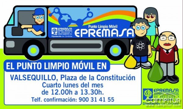 La localidad cordobesa de Valsequillo contará a partir de ahora con un Punto Limpio. Para ser más concretos, todos los cuartos lunes de cada mes, la Plaza de la Constitución de dicho municipio acogerá la ubicación de este Punto Limpio Móvil, que permanecerá en este lugar de 12:00 a 13:30 horas.