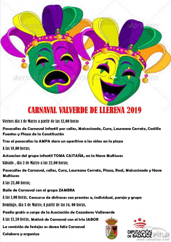 El viernes, sábado y domingo, 1, 2 y 3 de marzo, Valverde de Llerena se viste de máscara y ello porque la localidad pacense celebra su Carnaval 2019.