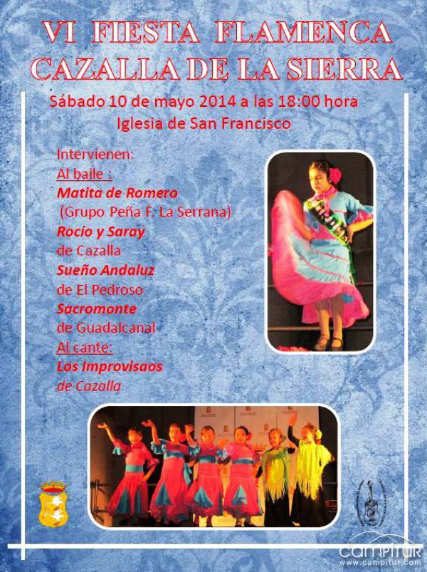 La localidad sevillana de Cazalla de la Sierra, acoge un año más, en concreto por sexto año consecutivo, la celebración de su VI Fiesta Flamenca de Cazalla de la Sierra. El evento se desarrollará el próximo sábado, 10 de mayo, a partir de las 18:00 horas en la Iglesia de San Francisco de la localidad.