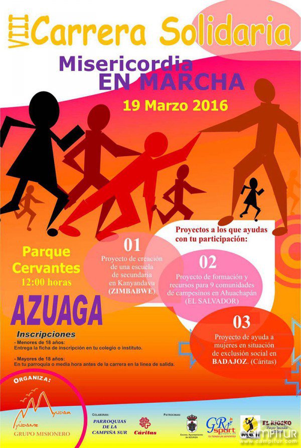 El sábado, 19 de marzo, el Grupo Misionero Ayúdame a Ayudar pone en marcha la celebración de la VIII Carrera Solidaria Misericordia en Marcha en Azuaga.