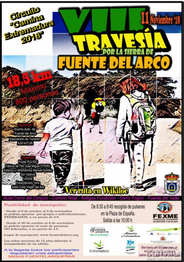 El Ayuntamiento de Fuente del Arco y la Asociación de Turismo ASFAITUR, organizan la puesta en marcha de la VIII Travesía por la Sierra de Fuente del Arco, que se llevará a cabo el próximo domingo 11 de noviembre.