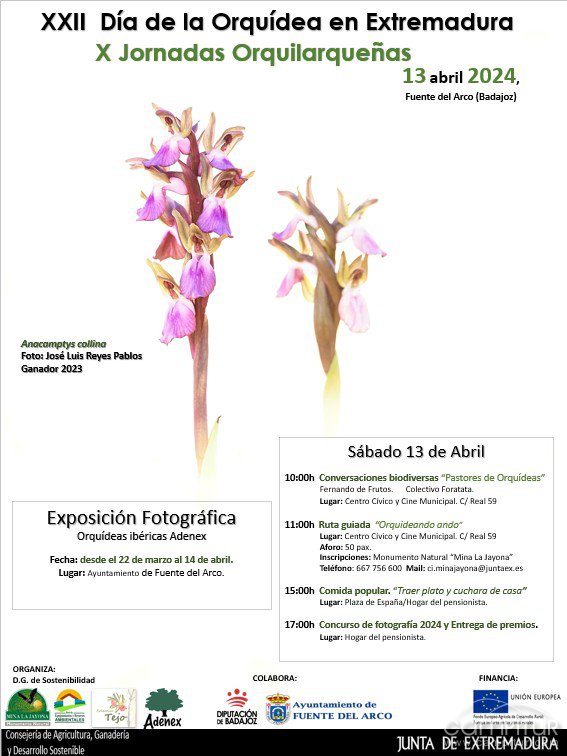 Para ello, se ha elaborado un completo programa de actividades, en el que se incluye la Exposición Fotográfica “Orquídeas Ibéricas Adenex”, que permanece expuesta desde el 22 de marzo hasta el 14 de abril, en el Ayuntamiento de Fuente del Arco.